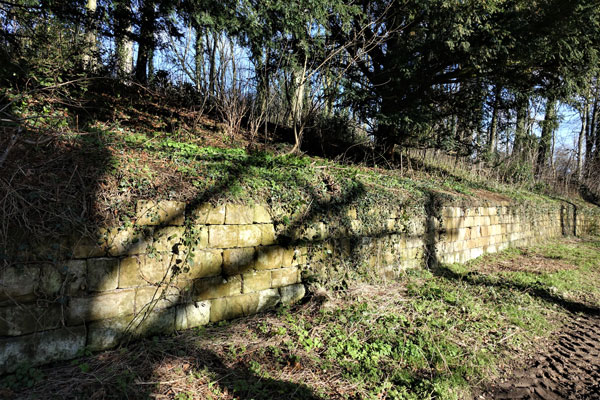 Entering Upleatham village from the West I was struck by this retaining wall which extends for quite some distance. The wall is made of really solid blocks of stone and is of high quality. Presumably the wall is in place because of subsidence caused by iron ore mining. |